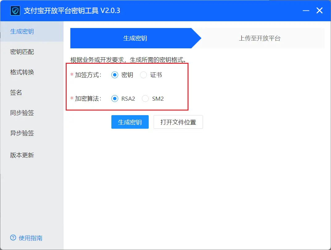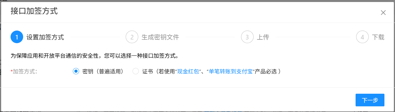 接口加签方式(密钥/证书)设置