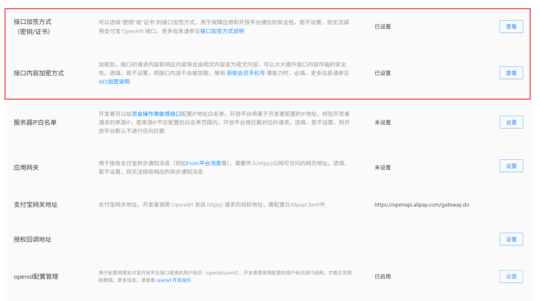 接口内容加密方式 设置