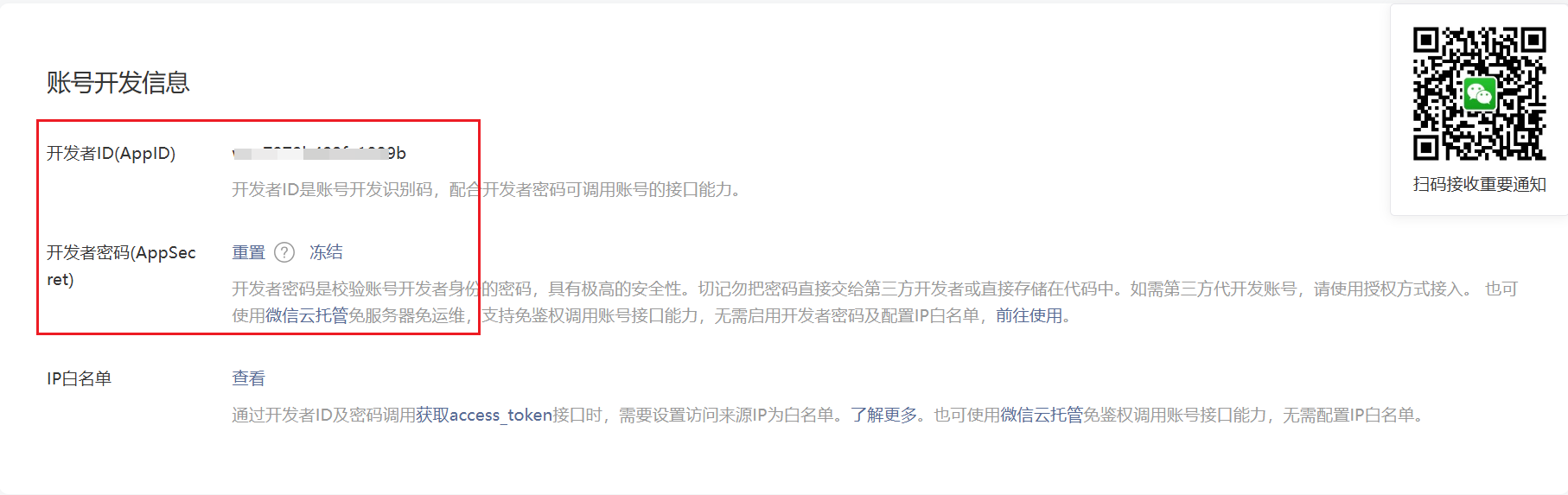 公众号对接微信公众号appId:前往微信公众号后台获取微信公众号appSecret:前往微信公众号后台获取微信公众号IP白名单:要配置Halo对应的服务器IP令牌(Token):点击获取token我们前往微信公众号后台,设置与开发 ->基本配置 如下图获取AppID和AppSecret服务器配置URL:https://你的域名/apis/anonymous.api.wechatmp.kunkunyu.com/v1alpha1/wechat/mp/connectToken 在上面的链接生成 token 填进来,公众号的toekn要和Halo后台的token保持一致